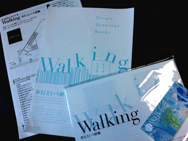 「Walking 歩行という経験」は、一見ウォーキング体験をするのかな?と思ってしまいますが、そうではなくて歩行にまつわる様々なシーンを、詩と絵と本などで表現した個展です。詩は管啓次郎氏が、絵は佐々木愛さんが、そして様々な歩行にまつわる本が展示会場に展示されていて、それを鑑賞者は自由に手にとって読むことが出来る様になっています。