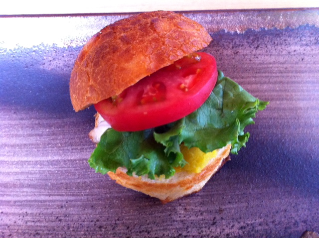 阿部鶏の香り焼き、米粉パンのサンドイッチ