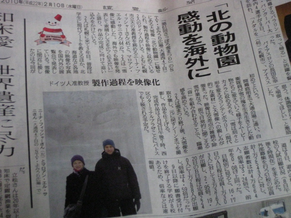そして、彼らの映像撮影模様が、2010/2/10の読売新聞(北海道版)に掲載された模様。