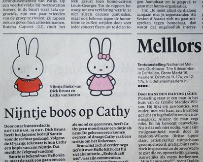 ミッフィ(うさこちゃん)の作者、ディック・ブルーナ氏が、サンリオキャラのキャシー(キティちゃんのお友達?)を著作権侵害で提訴したそうです。