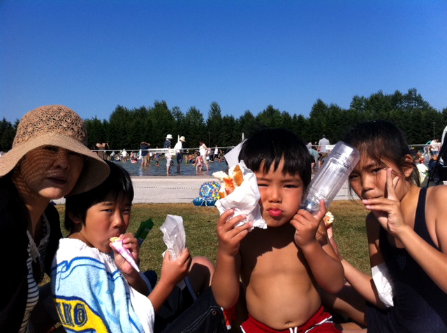 ちびっ子ギャング達が泊まりに来たので、モエレ沼公園のプールに連れて行きました。