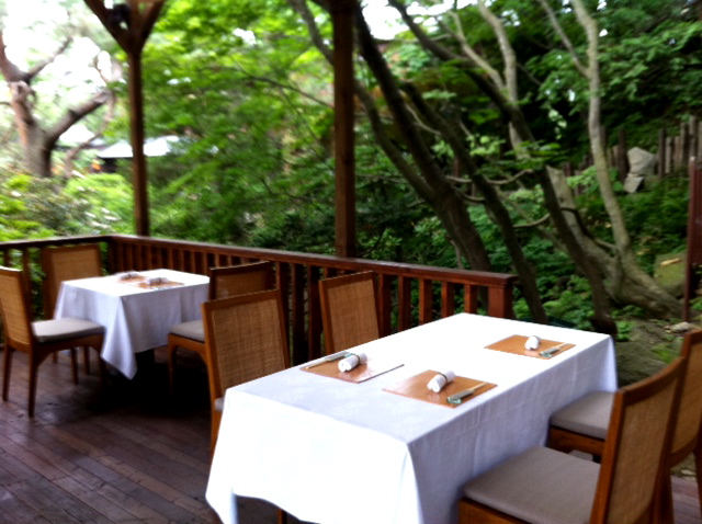 私たちは「テラスランチ」の客なので、庭を下って移動しました。