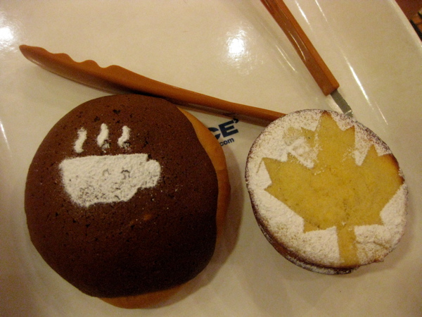昨日から販売された新製品とやらの「コーヒー」パンと、メイプルパンみたいなのを買いました。両方ラテ・アートみたいな(笑)粉が振ってあってかわいいです。