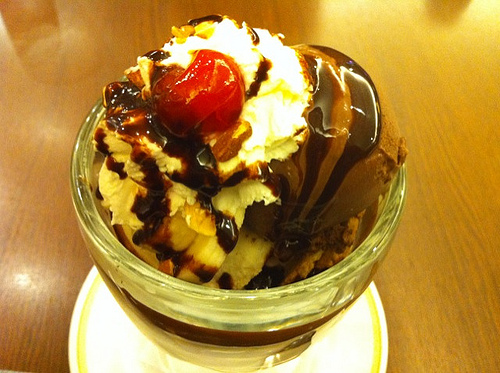 チョコパフェに「ホット・チョコソース」をかけていただきました。
