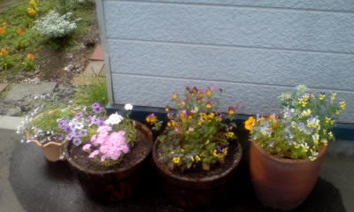 以前は種から育てて家の前いっぱいにレイアウトしていたので、近所の人の散歩コースに入れてもらっていた様子ですが(笑)、今では忙しくてさっぱりやらなくなってしまいました。枯らさない程度に、忙しい合間にも水やり出来る程度の数だけと決めて、今年はミニ・ガーデンを楽しみたいと思います。