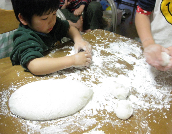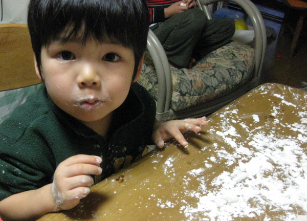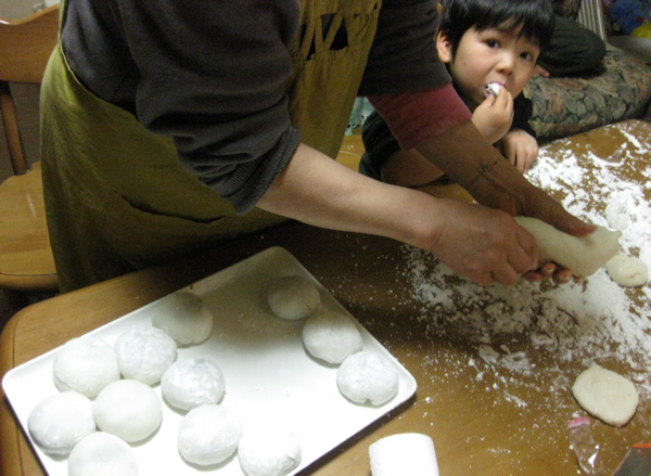 お餅つきと真っ白しろすけ。