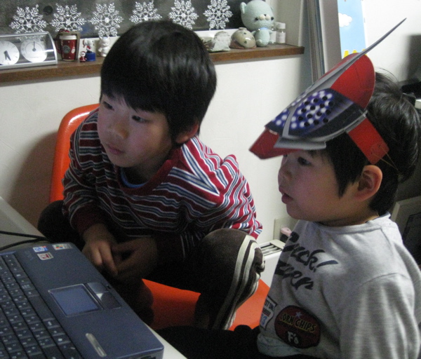 「炎神戦隊ゴーオンジャー」のDVD持ち込みでお泊まりの姪っ子甥っ子たち。