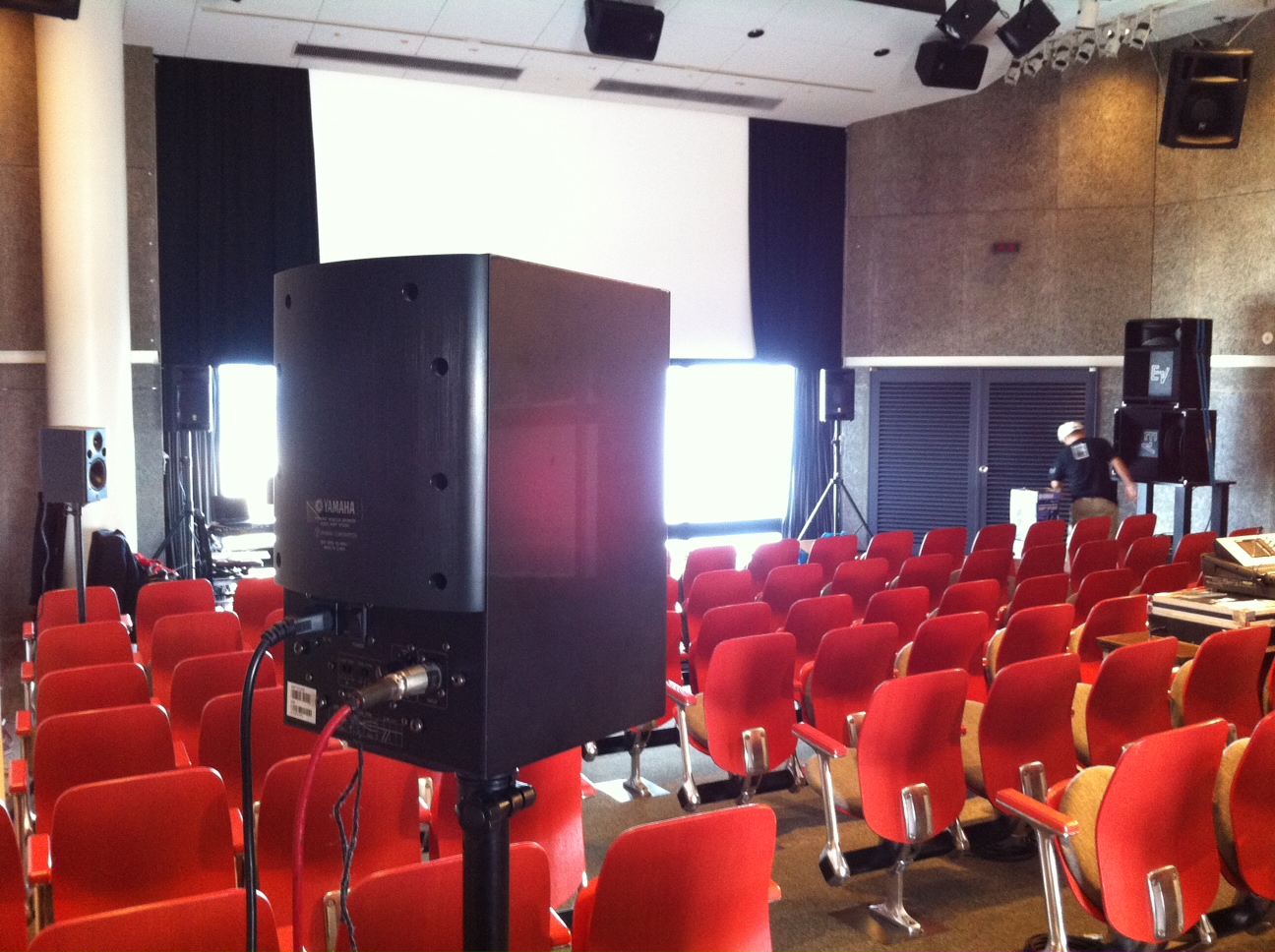 会場でさっそくマルチチャンネルの設営開始です。