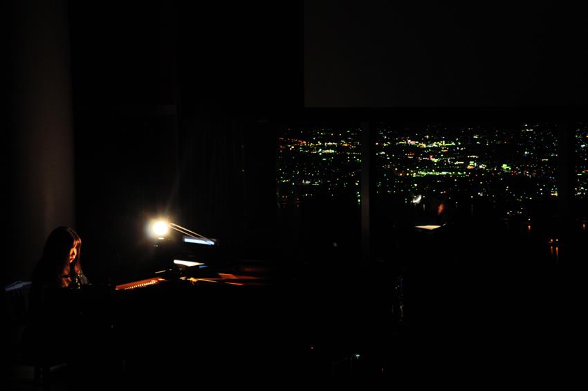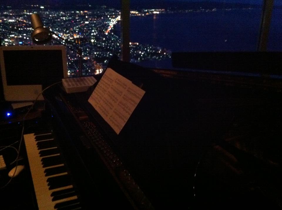 ピアノの横はガラス張りで一面に函館市内と海が一望出来るのです。