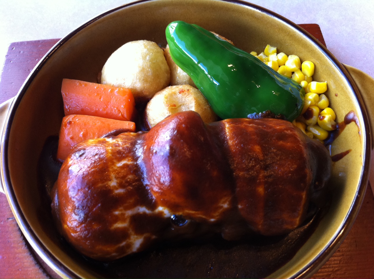 途中、大沼のケルンというハンバーグ・レストランで、モッツァレラチーズ・ハンバーグにチャレンジ。中々ボリュームある一品でした。