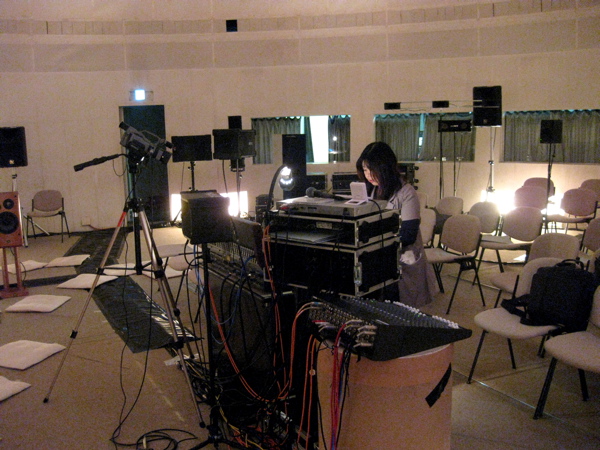 2002年 MOTUS主催 「FUTURA」にてスピーカー・オーケストラ・システム「アクースモニウム」の演奏法を学ぶ+