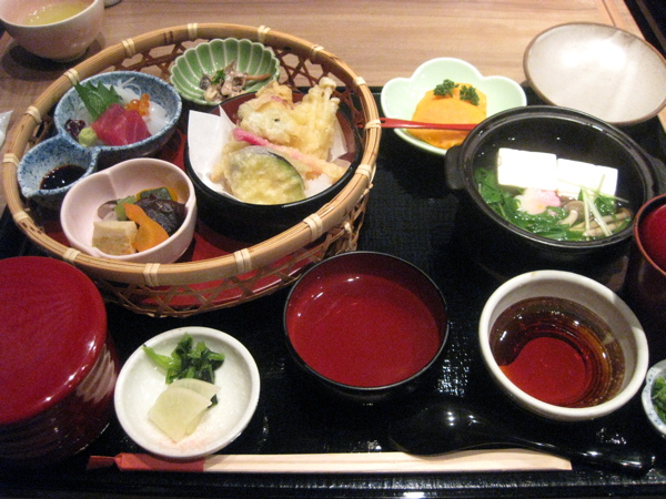 飛行機の時間の前に、2人で大阪の老舗料亭「大乃や」の味が少しリーズナブルにいただける「大乃や利休」で、鮮やかなランチをいただきました。